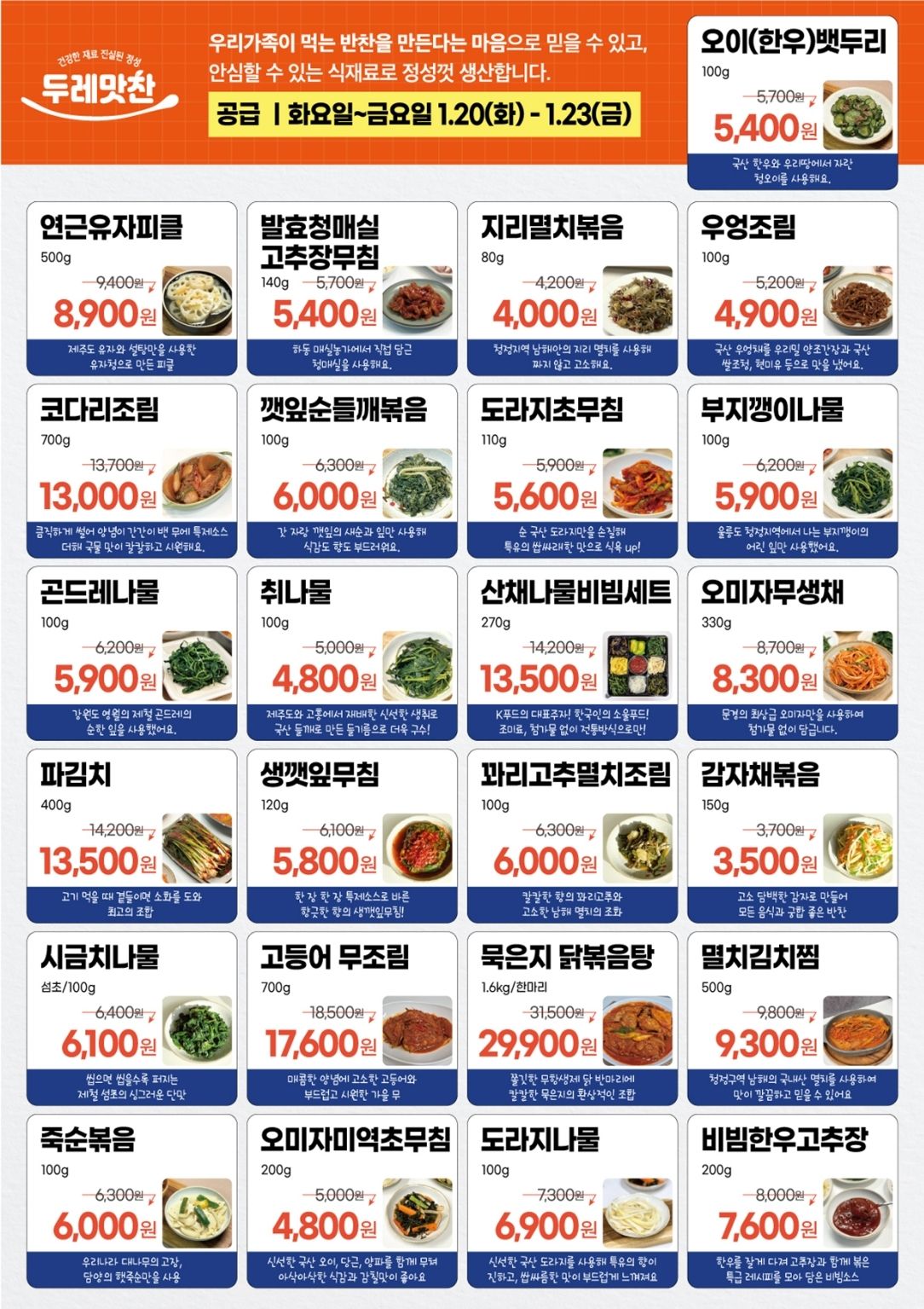 * 주문마감은 배송일 하루 전 오전 11:30분 입니다.