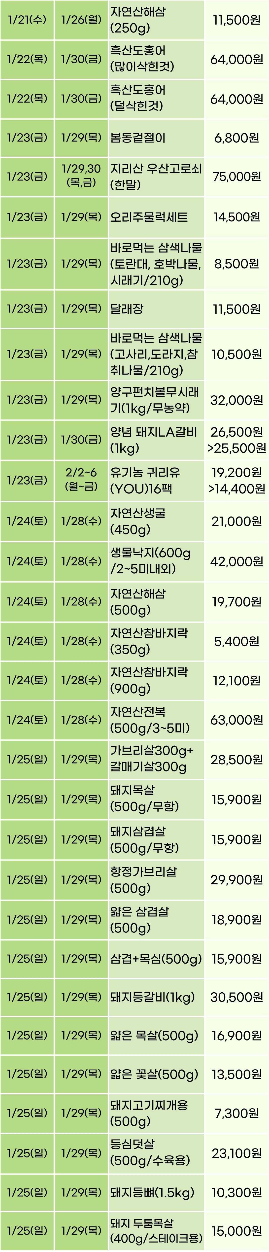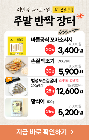 * 월요일 배송주문마감은 토요일 오전 11:30분 입니다.